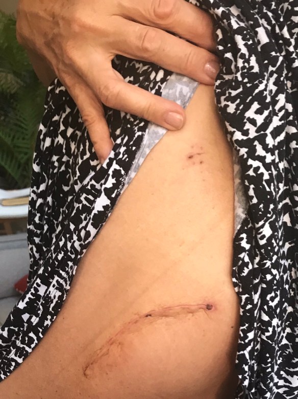 I am off to St Vincent’s Clinic to get my x-ray and consultation with Dr Nick. This all goes very smoothly and the x-ray looks good. Dr Nick removes the dressing from my op site – it’s the first time I have seen the size of the scar – it’s not looking too bad considering this is the first time it has been exposed and he declares that it is lovely and clean so all I need now is to use the Vitamin E Cream / Bio Oil to help reduce the scarring.